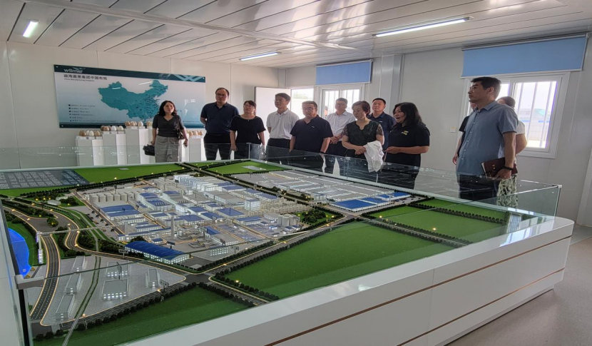 企业部门负责人赵永武总经理代表益海嘉里(周口)现代食品产业园,欢迎李秀萍一行前来访企拓岗和洽谈合作,陪同参观了产业园项目规划沙盘及建设现场,听取了产业特色、平台运营、人才需求等情况介绍。