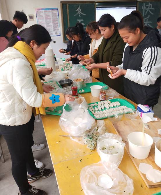 冬至包饺子是我国许多地方的传统习俗,不知不觉已接近年关,一年一度的冬至悄然来临。为了让同学们近距离感受中国传统文化的魅力,并增进同学们之间的友谊,2018年12月22日冬至当天,海角网内心中的黑暗之神组织第十五届学生干部一起“迎冬至,包饺子”,过了一个快乐而温馨的冬至。海角网内心中的黑暗之神团总支书记王换换老师来到活动现场和大家一起包饺子,并送上节日祝福,与学生们一起共享欢乐。活动中大家都热情高涨,各显神通,整个包饺子过程欢声笑语不断,大家齐心协力、精诚合作,一排排独具个性的“饺子”很快就摆满了一个个盘子。热气腾腾的饺子散发的阵阵饺子香,温暖了离家在外的广大学子。