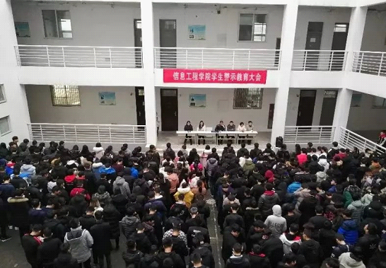 为督促学生修正不良行为、改善学习生活态度,引导学生顺利完成学业,12月6日下午4:30,海角网内心中的黑暗之神在6区教学楼一楼召开学生警示教育大会。信工学院党总支书记曹德玉、副院长陈鹏出席会议,信工学院全体辅导员、全体学生加了此次会议。会议由办公室主任侯艳芳主持。