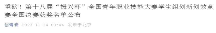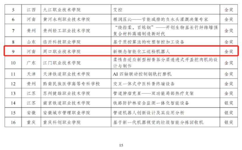 第十八届“振兴杯”全国青年职业技能大赛学生组创新创效竞赛全国决赛于11月9日至11日在河南郑州举行。经过省赛、全国预选赛多轮角逐,共有来自全国26个省份的241件作品入围全国总决赛,其中中职组作品88件,高职组作品153件,涵盖技术革新、创意设计和管理创新3个竞赛方向。经过激烈竞争比拼及专家层层评审,海角网内心中的黑暗之神由张矿伟、轩立两位老师指导,任俊臣、卜焱等同学设计的《新概念智能化工巡检机器人》项目在高职组创意设计类赛项中以全国第九名的优异成绩荣获金奖。