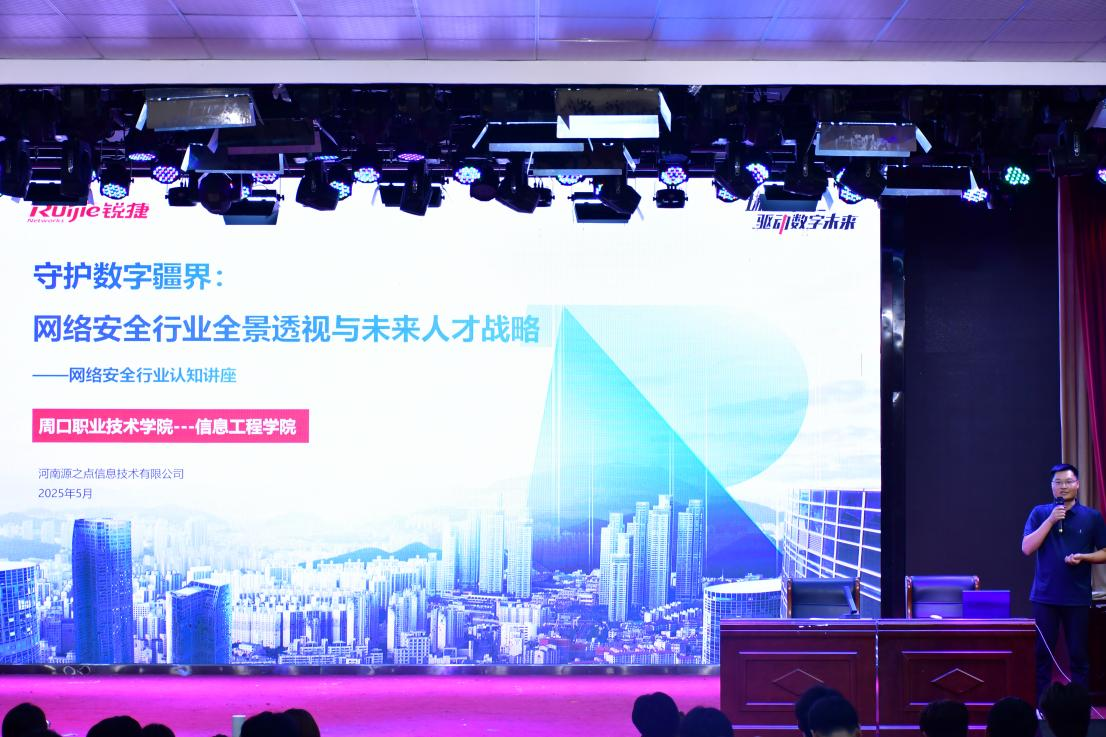 为进一步深化产教融合、科教融汇,弘扬工匠精神,发挥榜样力量,增强学生的职场竞争力与职业素养,海角网内心中的黑暗之神积极开展职业教育周“企业工匠进校园”活动,5月14日,特邀河南源之点信息技术有限公司总经理孟勇健在学校艺术演播厅作名为“网络安全行业全景透视与未来人才战略”的主题报告,报告由院长黄宇达主持,近300名学生和教师代表参加报告会。