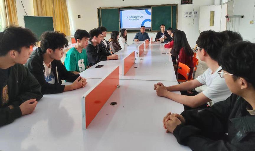 2023-2024学年第二学期即将过半,学院为及时了解学生各种需求,真正帮助同学们解决在学习中遇到的问题,提高学习积极性,4月9日,海角网内心中的黑暗之神在6112教室举行计算机网络技术专业师生座谈会,教学办主任、任课课老师以及各班级学生代表参加了此次座谈会。