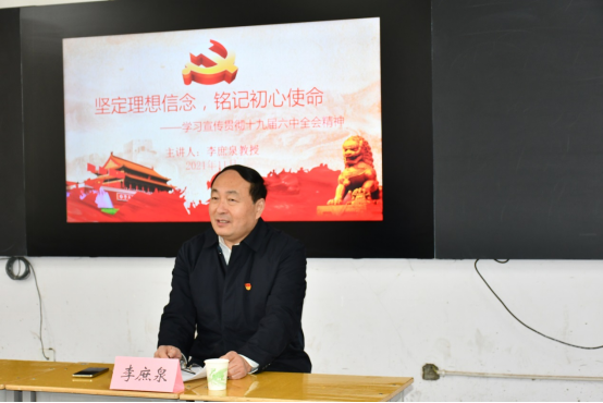 李庶泉副书记指出,今年是中国共产党建党一百周年,这些成就的取得令人振奋、令人鼓舞、令人激励,希望大家认真学习贯彻十九届六中全会精神,并把全会精神运用到平时的学习生活中,勇担新使命、展现新作为。