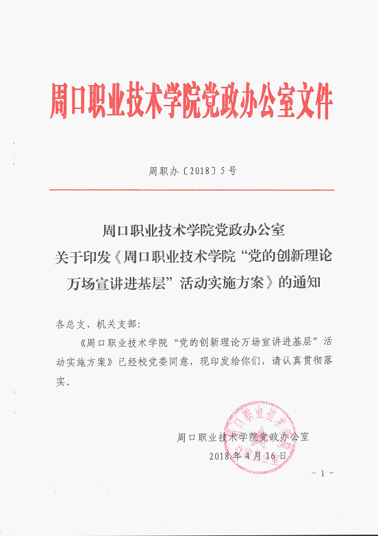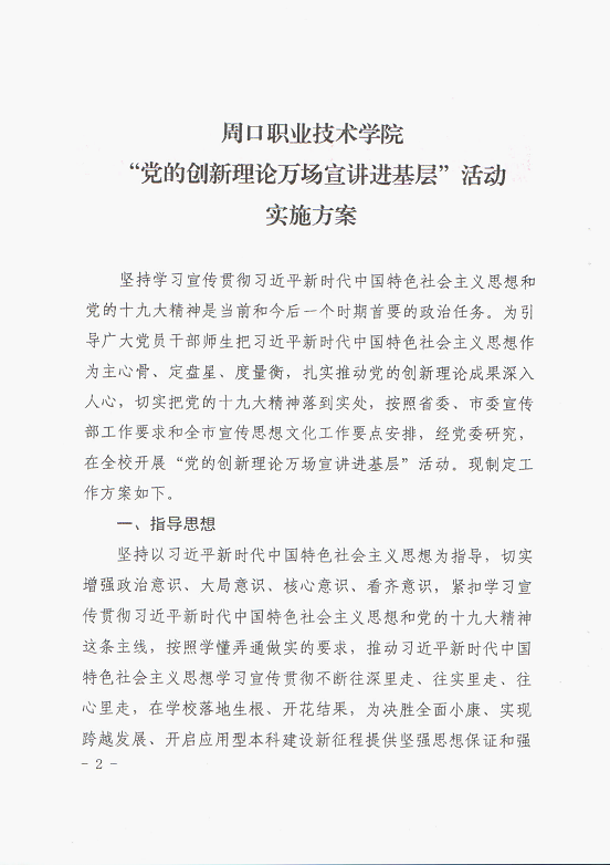 周口职业技术学院“党的创新理论万场宣讲进基层”活动实施方案