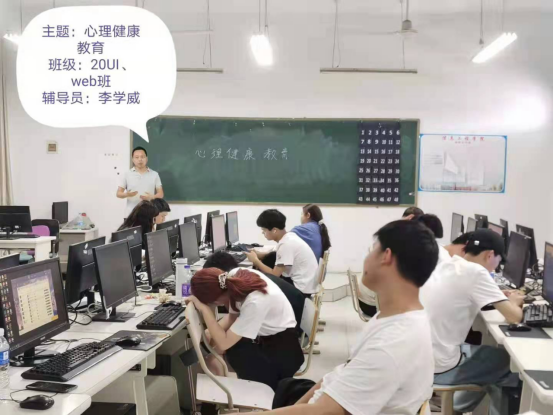 辅导员首先向同学们介绍了什么是心理学,心理出现问题的特征,然后讲解了大学生存在心理问题的原因,也介绍了调节心理问题的可行方法。给同学们阐述了如何适应大学生活,如何交友,自己应该以何种心态来面对大学的学习和生活。最后,向同学们介绍了我们学校的心理咨询中心,告诉了同学们我们校区的心理咨询中心位置、预约热线、开放时间、微信平台以及各类开放放松室;也介绍了我们学校的心理活动,如大学生心理健康筛查月,心理问卷调查,心理健康一对一辅导等等。