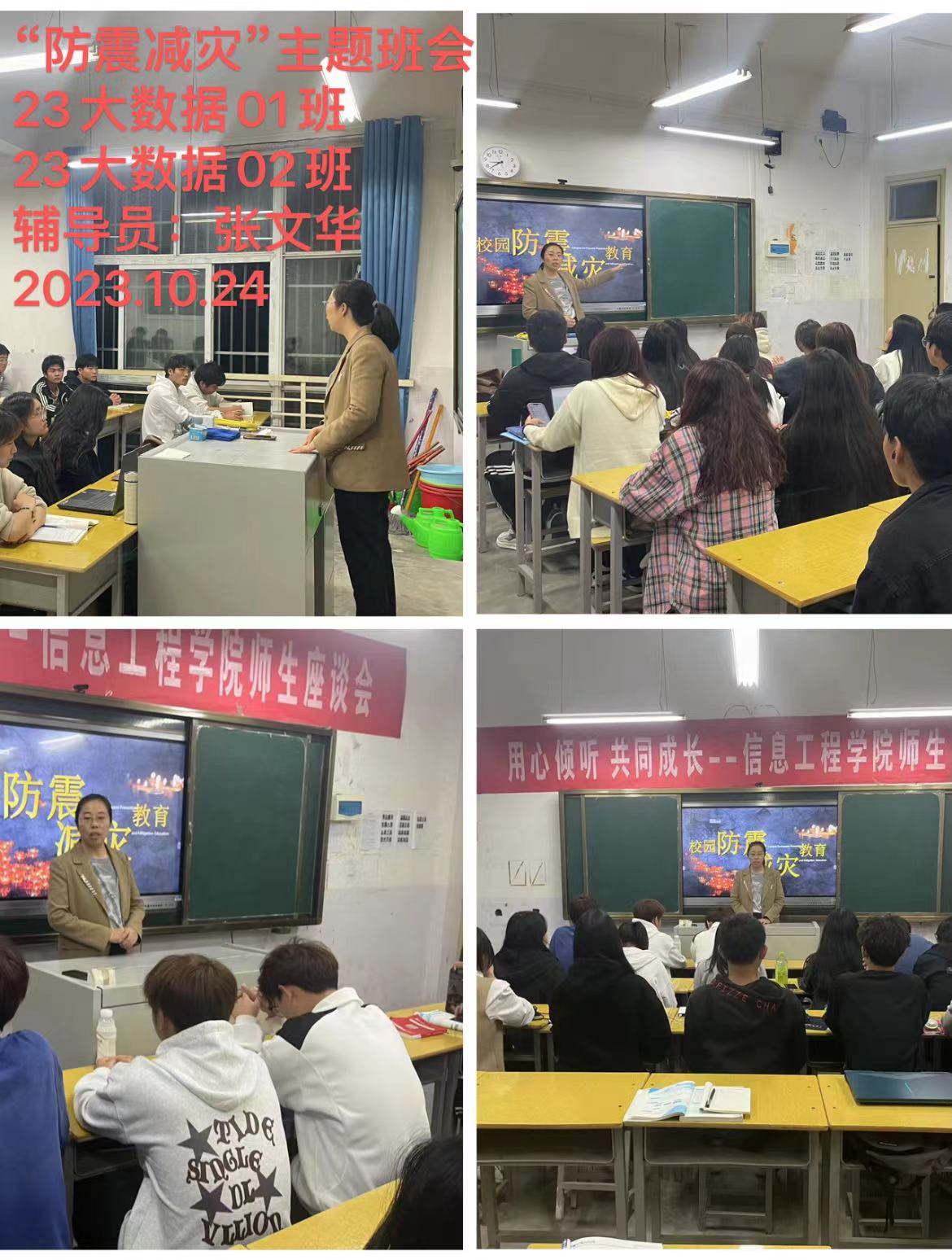 此班会课上,各班辅导员通过讲座、视频等形式向学生宣传普及防震减灾知识,包括地震的成因、震前预防、地震的危害性以及如何在地震中保护自己。同时针对目前面临的各种常见突发灾害,如大雨、大风等的处理事项也进行了讲解,使同学们对于灾害预防和处理有了更为深刻的认知。希望通过学习,让大家了解地震科普常识、近年来发生的大地震等,并掌握地震自救和逃生的方法。