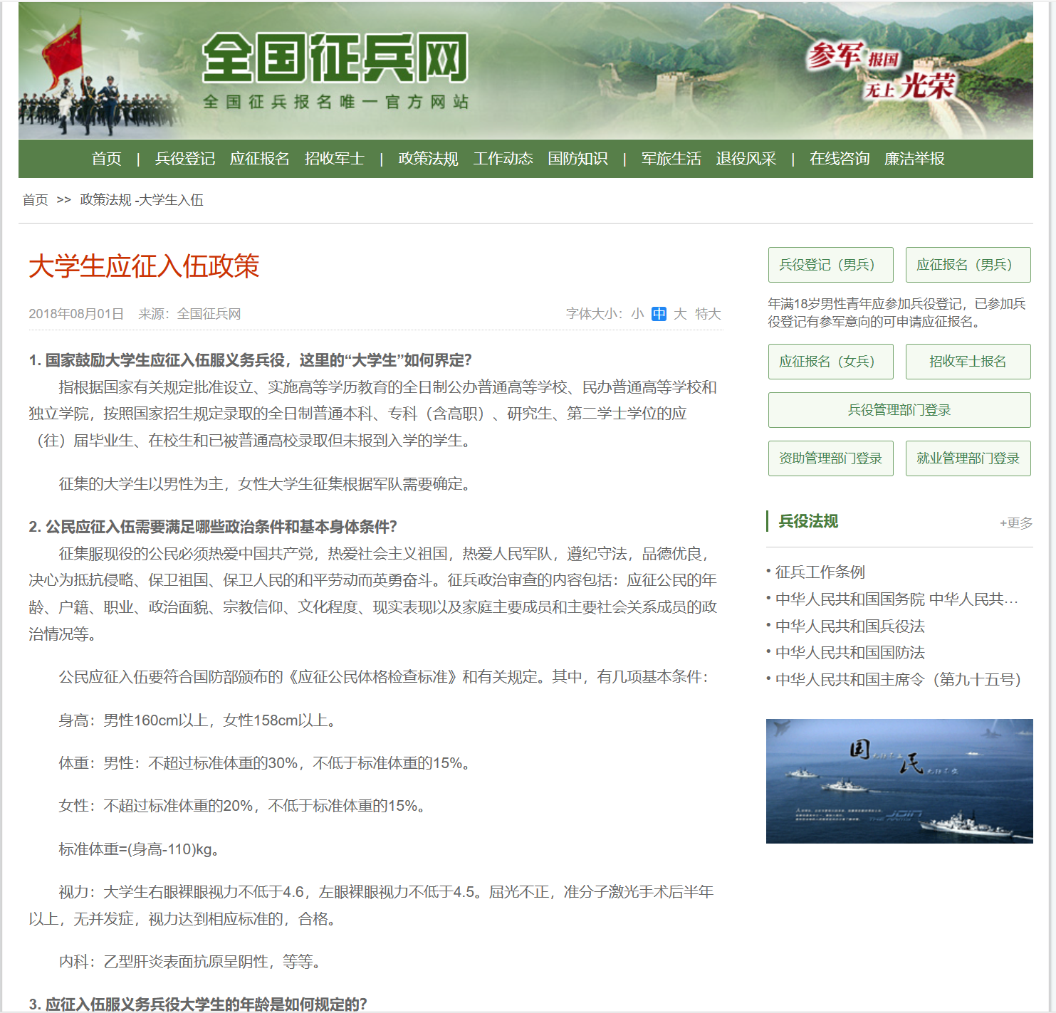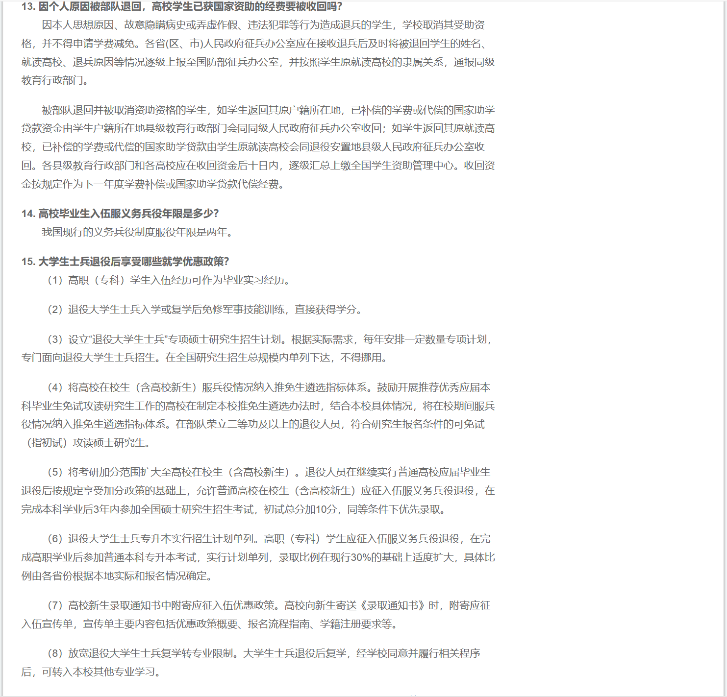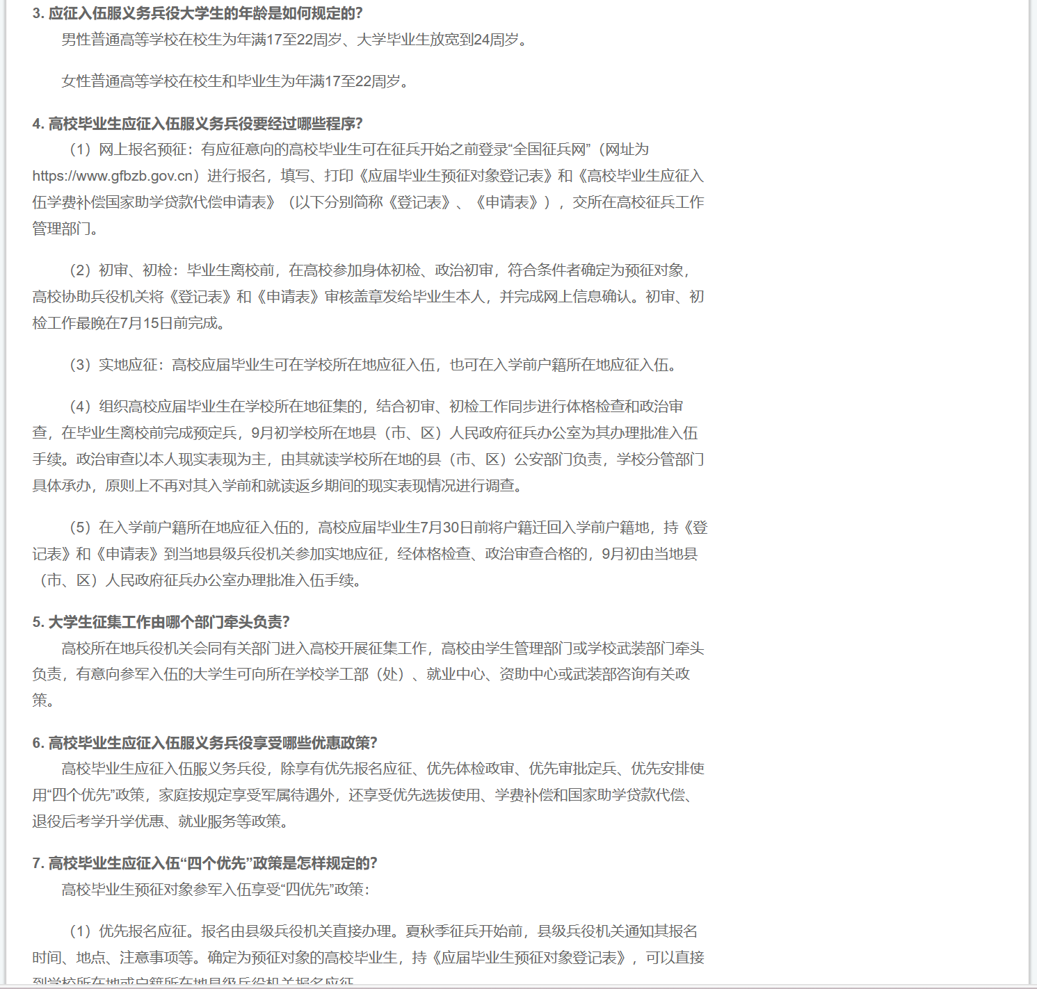 以下是大学生应征入伍政策: