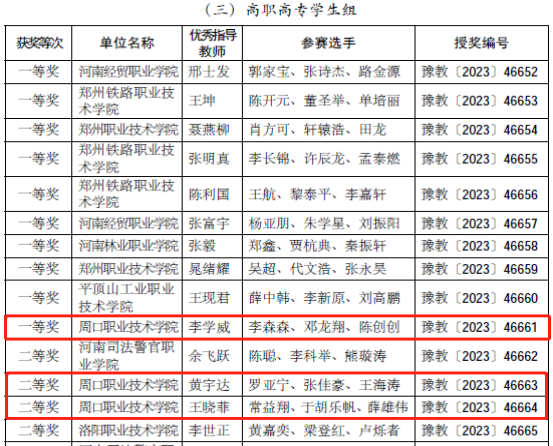近日,河南省教育厅办公室下发了文件《关于公布第七届“御网杯”本科高校及职业院校信息安全大赛获奖名单的通知》(教办科技〔2023〕275号),我院学子再获佳绩,取得多项奖励,其中线上个人挑战赛一等奖12项,线下团体对抗赛一等奖1项、二等奖2项,线下应急响应团体赛三等奖1项,李学威、王晓菲、黄宇达三位老师被评为优秀指导教师。